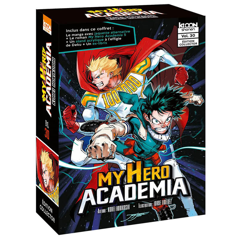 Pour ceux qui l'ont raté le mois dernier, l'édition limitée du tome 30 de My Hero Academia avec la jaquette alternative + le roman + un stand acrylique de Deku est de retour en stock sur Amazon !
