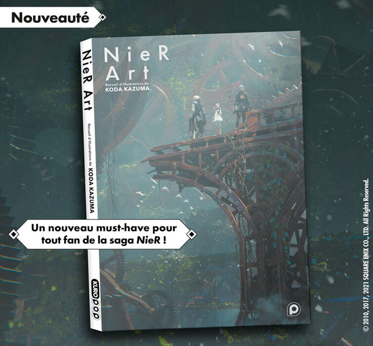 Pour rappel, l'artbook de Kazuma Koda (concept artist des jeux NieR) de 160 pages grand format en français par Kurokawa sort officiellement aujourd'hui à 20€ !