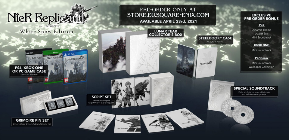 Mise à jour 1er avril 2021 : Pour ceux qui l’ont raté, l’édition collector FR de NieR Replicant ver.1.22474487139 est de retour en pré-commande sur PS4 en exclu sur la boutique de Square Enix France !