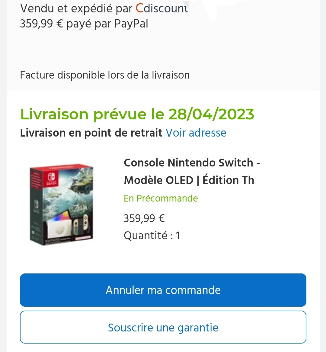 Je ne voulais plus de cette Switch, j'ai annulé ma préco à la FNAC et j'ai utilisé l'avoir pour acheter une nouvelle TV (un super bon plan 😎) sauf qu'en regardant mon compte, je vois un débit de 360€ de chez Leclerc. J'en ai déduit que j'avais oublié d'annuler une préco chez eux et c'était bien le cas.