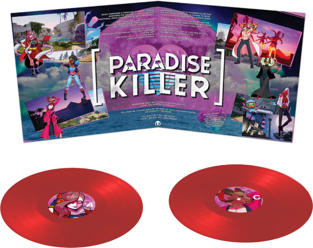 Description : Black Screen Records et Kaizen Game Works se sont associés pour sortir la bande-son vibrante funky city pop/vaporwave de Barry "Epoch" Topping pour le jeu d'aventure en monde ouvert Paradise Killer sur vinyle en édition limitée au début de l'année prochaine. L'incroyable bande-son de Barry sera disponible sur double vinyle Blood Crystal Red 180g et est livrée dans une magnifique illustration inspirée des animes et des villes pop des années 80 par Mizucat avec des illustrations et une mise en page supplémentaires de Kaizen Game Works, Barry Topping et Dane Baudoin et comprend un émail Dead Nebula gratuit pin, une affiche A2 Crimson Acid pliée et un code Bandcamp pour l'album numérique.
