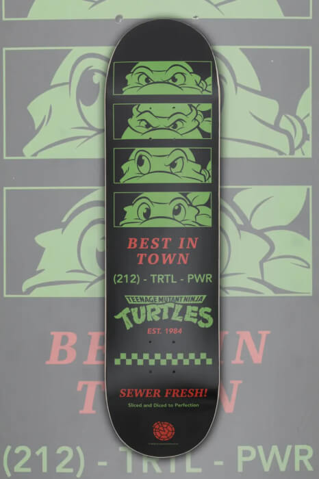 Description : Affinez vos talents de ninja avec le skateboard noir Teenage Mutant Ninja Turtles (par DUST !). Inspiré des héros classiques dans une demi-coque, ce produit exclusif présente un design élégant qui est parfait pour l'affichage. Vous pouvez également attacher des roues et faire un tour dans votre skatepark le plus proche (ou dans les égouts de New York).