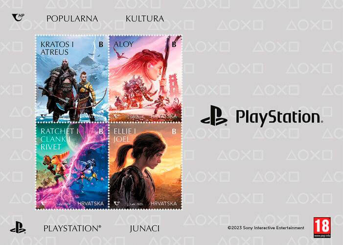 Description éditeur : La nouvelle série de timbres-poste commémoratifs du bloc est dédiée à la culture populaire et présente pour la première fois les héros PlayStation sur des timbres-poste. Les motifs de la série de cette année sont certains des héros PlayStation les plus populaires avec Kratos et Atreus, Aloy, Ellie et Joel et Ratchet, Clank et Rivet.