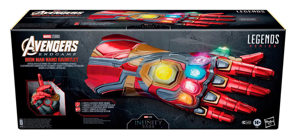 Description éditeur : Des héros désespérés. Six pierres. Une chance de sauver l’univers. Donnez vie à l’une des armes les plus puissantes de l’univers Marvel avec ce poing électronique articulé Iron Man Nano Gauntlet de la série Marvel Legends. Utilisez la puissance des Infinity Stones et imaginez sauver l’univers entier d’un simple claquement de doigts. À 18 pouces de hauteur, ce poing électronique présente une articulation flexible des doigts, des lumières et des sons, y compris Snap inspiré du film! et 6 pierres Infinity lumineuses amovibles.