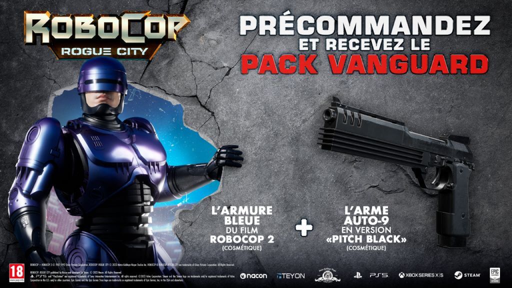 - le pack Vanguard (L'armure bleue du film Robocop 2 + l'arme auto-9 en version pitch black)
