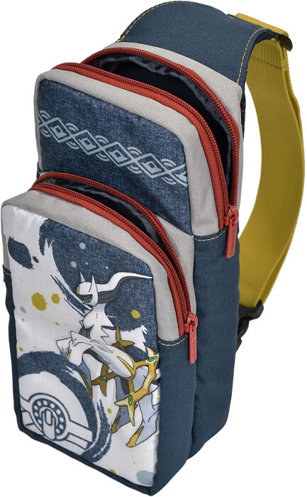 Description éditeur : Avec le sac bandoulière Pack Aventure Légendes Pokémon : Arceus par HORI, emportez vos jeux, votre console partout ! Le sac bandoulière Pack Aventure est idéal pour transporter vos Pokéballs et vos accessoires Nintendo Switch partout. Votre Switch, son dock, le chargeur, tous les accessoires dont vous aurez besoin peuvent être parfaitement rangés dans votre sac Pack Aventure. Son design soigné respecte l’esthétique traditionnelle de la région de Hisui, qui est non sans rappeler la période Edo du Japon !