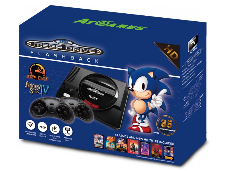 La version US qui sort en septembre est la Sega Genesis Flashback ET Sega Megadrive Flashback pour l’Europe ; Et effectivement pour une fois ils ont fait l’effort de faire une mini megadrive avec 2 manettes sans fil et une résolution 720 p sur les 85 jeux présents.