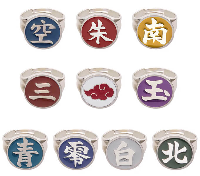- Set de 10 bagues des Membres d'Akatsuki (en métal, ajustable de taille 8 à 13)
