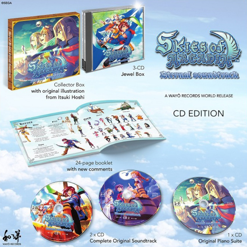 Mise à jour le 4 septembre 2019 : Le fameux coffret collector de la bande originale de Skies Of Arcadia en CD est maintenant aussi disponible en pré-commande sur la Fnac à 30€ !