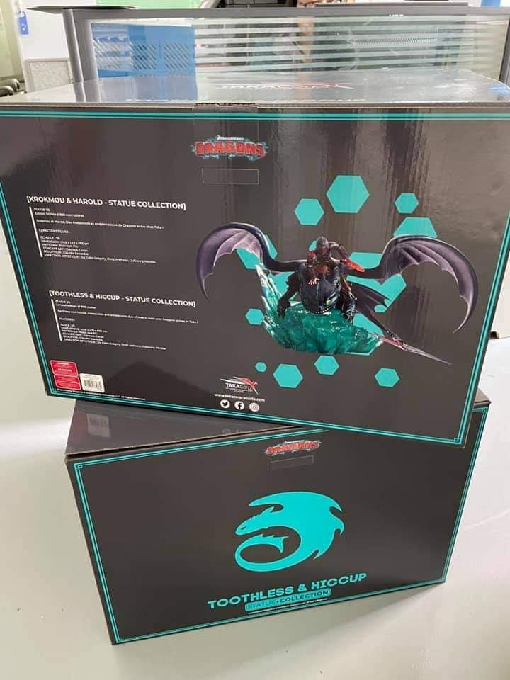 Info : Bon enfin après des mois d’attente et de report la Statue de Krokmou & Harold va enfin arriver. Taka a annoncé qu’elle quittait l’usine à la fin du mois, envoi via conteneur donc compter entre 1 mois 1/2 et 2 mois et une fois réceptionné par Taka envoi aux clients et revendeur. Donc compter une livraison entre début et mi Juin.