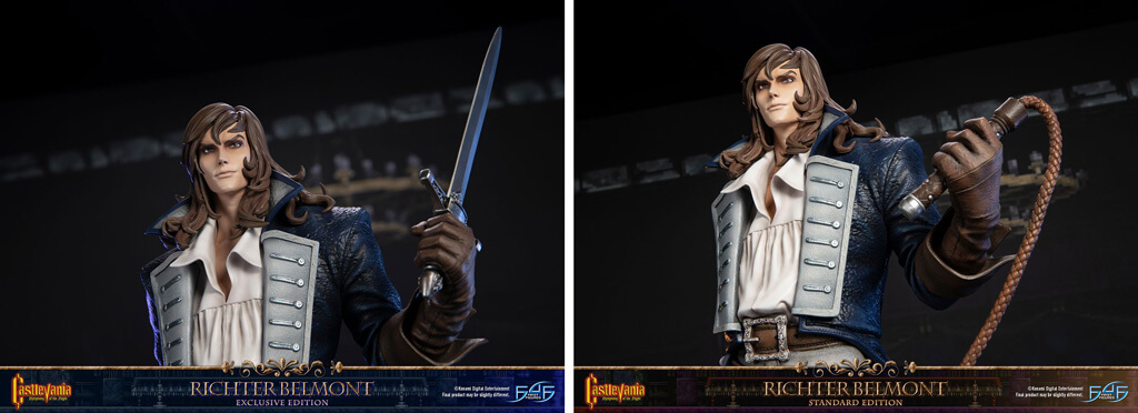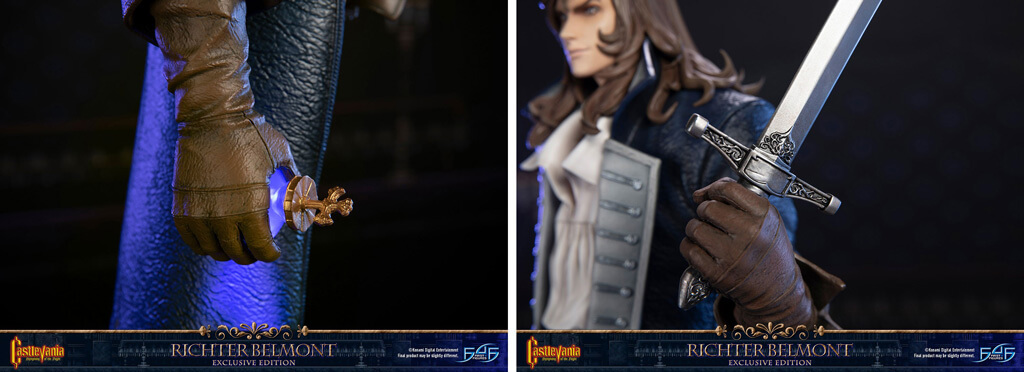 Description éditeur : Richter Belmont, merveilleusement détaillé, se tient debout brandissant son arme emblématique, le fouet "Vampire Killer". Sa tenue est magnifiquement texturée et les détails de son fourreau d'épée sont définis. Il se tient sur notre base très détaillée inspirée du thème et du style du jeu vidéo lui-même.