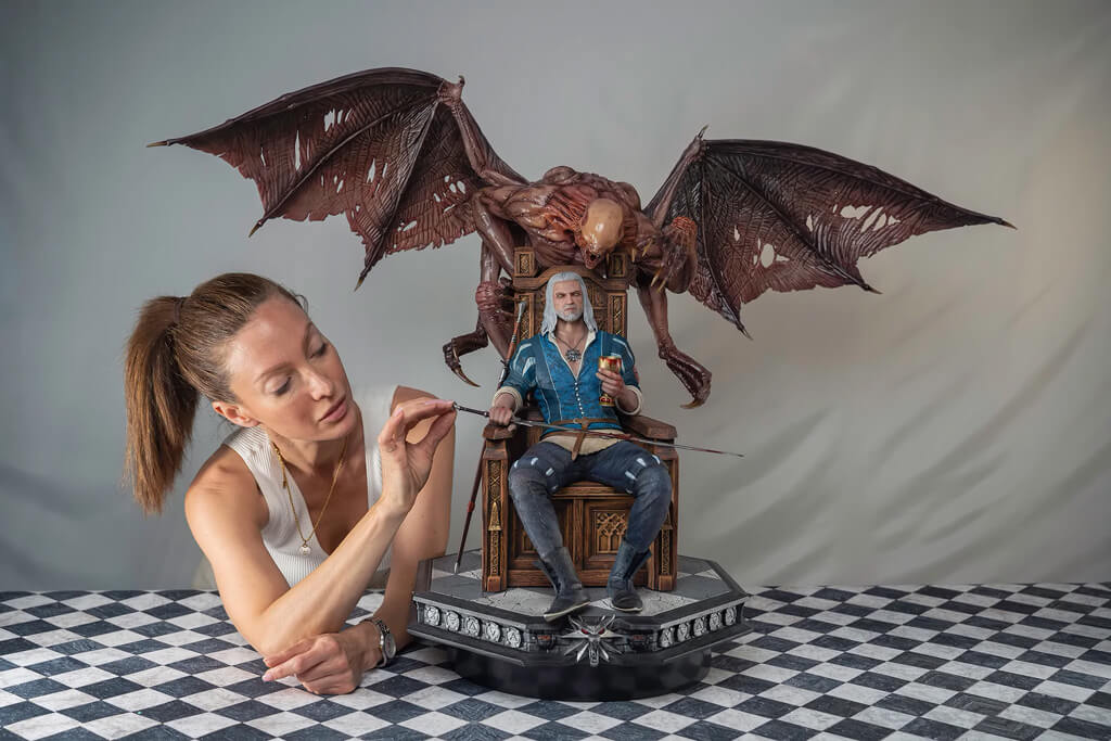 - La statuette en résine peint à la main de Géralt