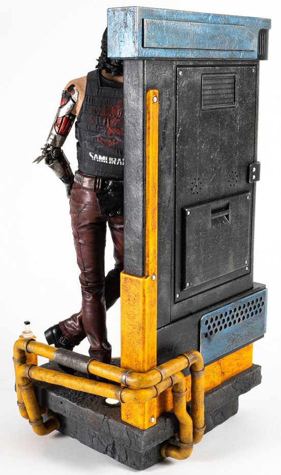 Description éditeur : Le studio PureArts est très heureux de présenter notre réplique 1/4 Echelle de Johnny Silverhand, conçue d’après l’apparence du personnage emblématique du jeu vidéo tendance, Cyberpunk 2077. Johnny, un personnage central du jeu, est également connu comme Rockerboy et chanteur du groupe Samurai. PureArts est connu pour ses sculptures incroyablement détaillées et ses applications de peinture de haute qualité, mais cette version révolutionnaire repousse les limites des statues de collection et comprend une expérience médiatique complète ! La base comprend un écran LCD HD de 13,3 pouces (33,8 cm) entièrement intégré et un système de son à deux haut-parleurs, qui joue la bande-son officielle exclusive et est chargé de médias et d’économiseurs d’écran supplémentaires du jeu.
