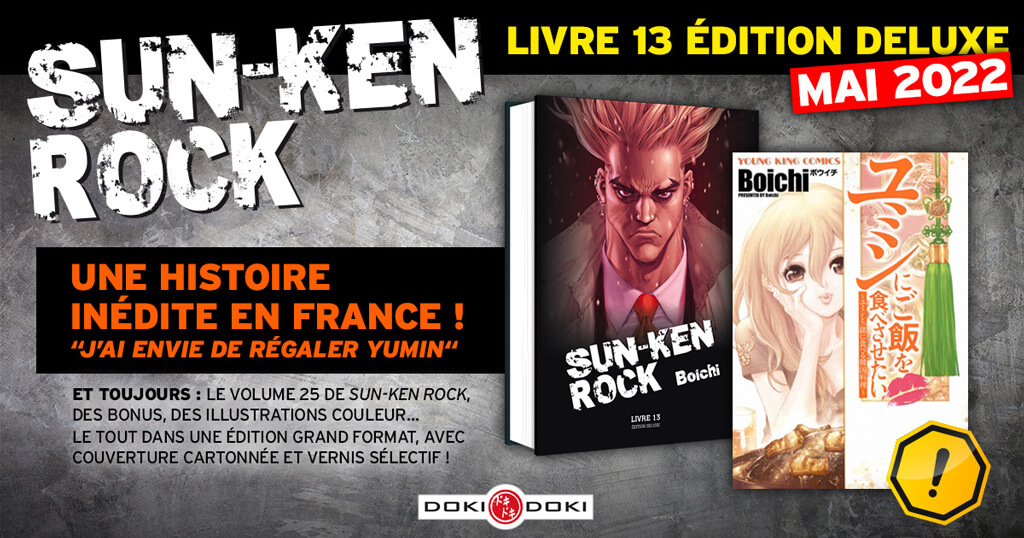 Description éditeur : Redécouvrez la série culte de Boichi en version deluxe ! Rejoignez la Sun-Ken Rock Team dans sa spectaculaire guerre des gangs ! Bastons, jolies filles, costards de marque... Un graphisme magistral au profit d'un récit explosif qui aura marqué l'histoire du manga d'action !
