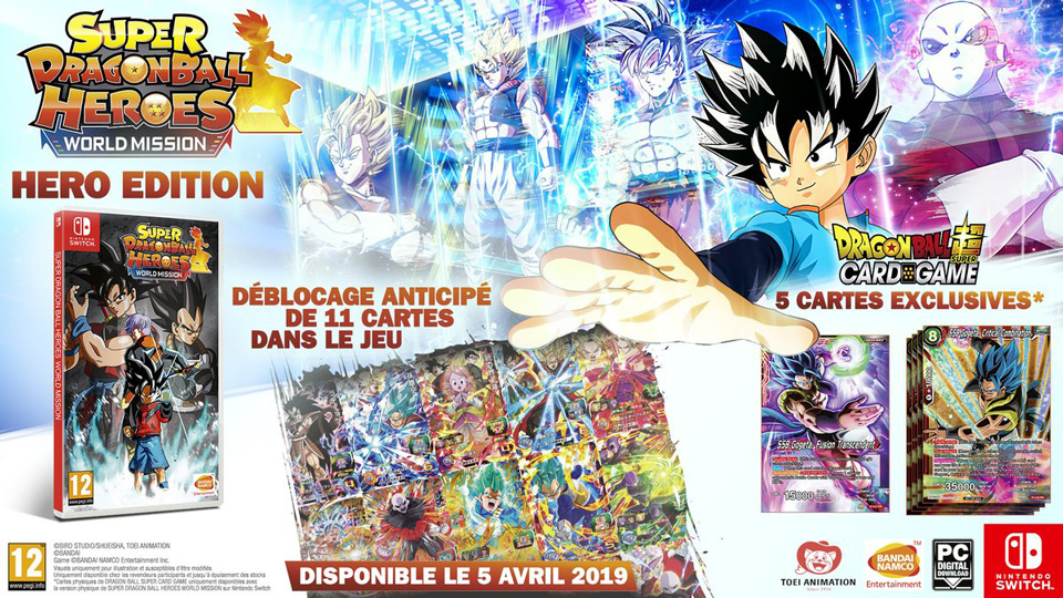 Mise à jour le 2 avril 2019 : La petite édition day one Hero de Super Dragon Ball Heroes : World Mission prévue en fin de semaine est de retour en pré-commande à 55€ +10€ offerts en CC sur la Fnac !