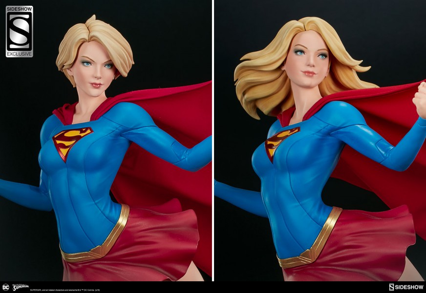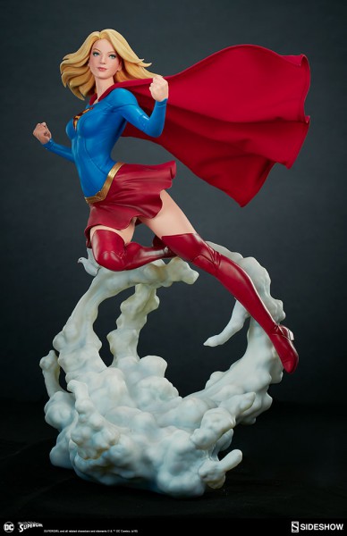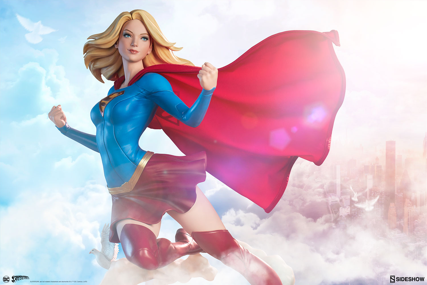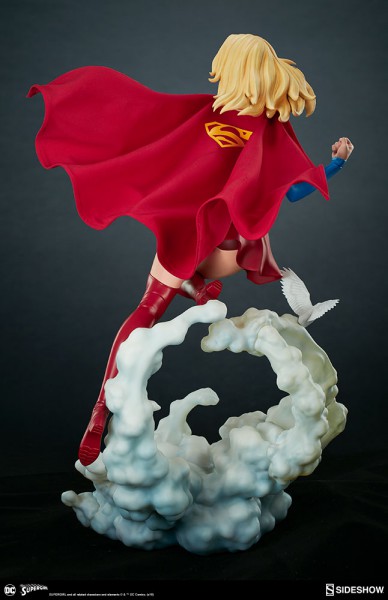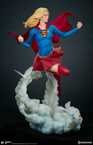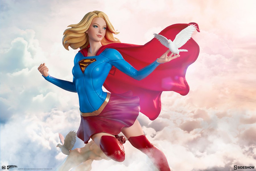 Description éditeur : Inspiré par l’œuvres d’art (bientôt en vente) de l’artiste renommé Stanley ‘Artgerm’ Lau, la figurine de Supergirl Premium Format mesure presque 50cm de haut. Elle donne l’impression d’un vol aéré et sans effort alors qu’elle plane à côté d’un oiseau sur une base de nuages qui ondulent. Entièrement en polystone la figurine dispose d’un costume bleu sculpté avec le symbole emblématique de la Maison d’El sur sa poitrine ainsi que d’une jupe rouge dynamique et des bottes. Sinon elle possède également une cape en tissu rouge marquée avec son symbole jaune, avec câblage interne pour permettre des options de pose cape personnalisée. Le portrait de Supergirl a les cheveux blonds coulants, et la figure inclut une main gauche alternative tenant un oiseau blanc. Afficher Kara avec un poing fermé ou avec un ami à plumes dans les deux éditions de cette figure vraiment super.