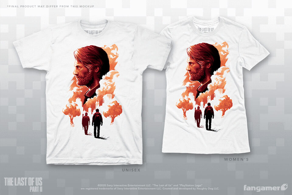 Le tee shirt avec Joel en orange et Ellie en bleu me plait bien 🙂 !