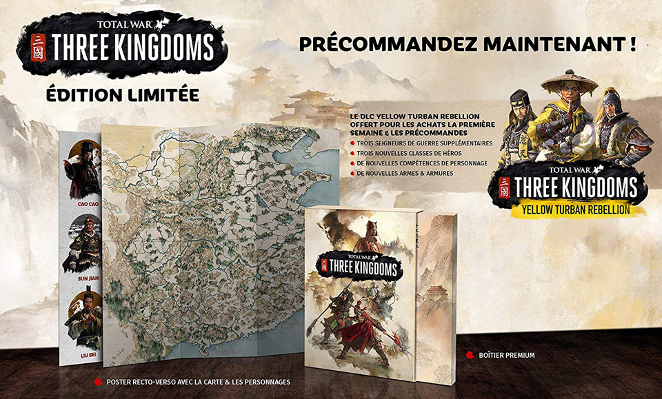 Mise à jour le 16 mai 2019 : Nouvelle petite baisse de prix pour l’édition limitée de Total War Three Kingdoms disponible en préco à moins de 43€ sur Amazon au lieu de 60€ sur Fnac et Micromania à moins d’une semaine de la sortie !