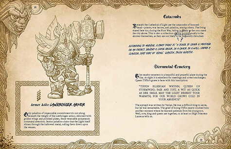 Description éditeur : Ecrit par Christie Golden, auteure de plusieurs best-sellers cités par le New York Times, World of Warcraft : À la découverte d’Azeroth est la première étape d’un voyage dans les terres d’Azeroth. Constitué de “rapports” du maitre espion, souvent annotés par les commentaires humoristiques du capitaine Doucebrise, ce guide propose de belles illustrations sous forme de croquis de villes, de personnages et d’armes.