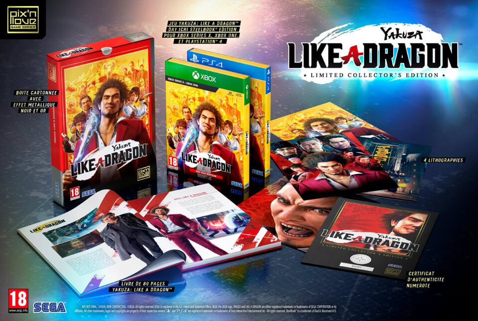 Mise à jour le 9 septembre 2020 : Comme prévue, l’édition collector de Yakuza : Like a Dragon par Pix’n Love limitée et numérotée à 2400 exemplaires est maintenant disponible en pré-commande à 80€ !