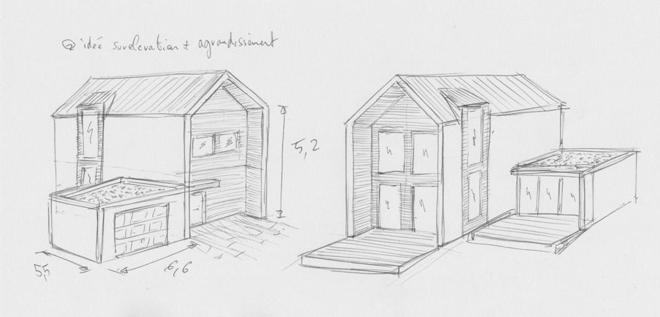 Mais comme je veux pas faire les choses a moitié, j'ai déjà dessiné quelques petites idées de toiture et d’agrandissement (oui oui c'est jamais assez grand pour moi XD) que je partage pour avoir votre avis. On sait jamais, ça ce trouve il y a des architectes (même amateurs) dans le coin qui auront de bonnes idées ^^