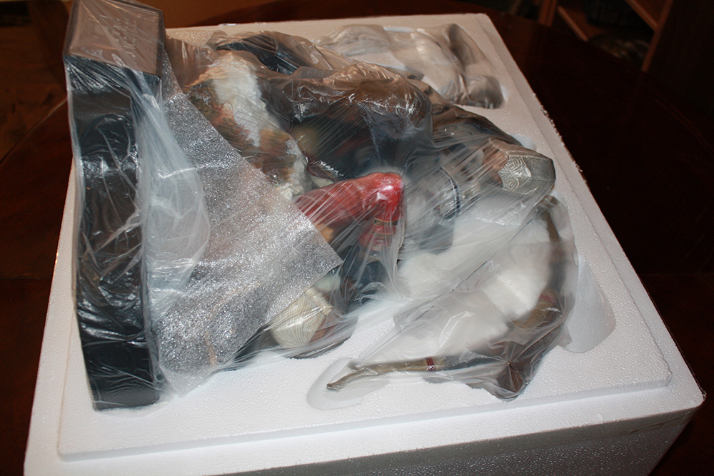 Elle n’a jamais été commercialisée, cependant on peut trouver des vendeurs sur Ebay qui la revendent. Il existe une déclinaison en bronze qui elle est limitée à 100 exemplaires. Les dimensions de la statue sont : 46 cm x 31 cm x 55 cm. Passons maintenant à l’unboxing :