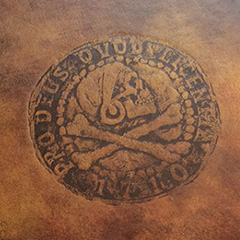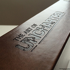 Comme sur le fourreau, le titre est ici embossé comme sur la tranche, où l’on retrouve les logos de Naughty Dog, et de Dark Horse, qui a édité cet artbook. Sur le verso, cette fois ce n’est pas vide, avec la présence de la pièce d’Avery et la devise des Pirates «Pro Deus Qvod Licentia» (“Pour Dieu et la Liberté”). Même les pages ont eu droit à une finition en étant toute recouverte de rouge