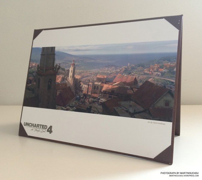 L’artbook n’est pas de suite accessible car il est rangé dans un énorme fourreau qui est prévu pour accueillir en plus de celui-ci, l’artbook The Art of the Uncharted Trilogy aussi dans sa version collector (je ne l’ai pas encore, mais je compte bien sûr l’acquérir un jour).