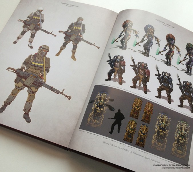 Ensuite, on retrouve les dessins et concepts rangés chapitre par chapitre, avec à chaque fois le nom des artistes en bas de page.