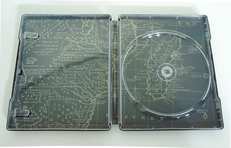 À l’intérieur, on trouve la fameuse carte au trésor qui est sur le coffret, mais dans une couleur différente et avec l’ile de Madagascar nettement reconnaissable. Par contre, gros regret de ne pas avoir de boitier amaray en plus pour éviter de manipuler le steelbook trop souvent.